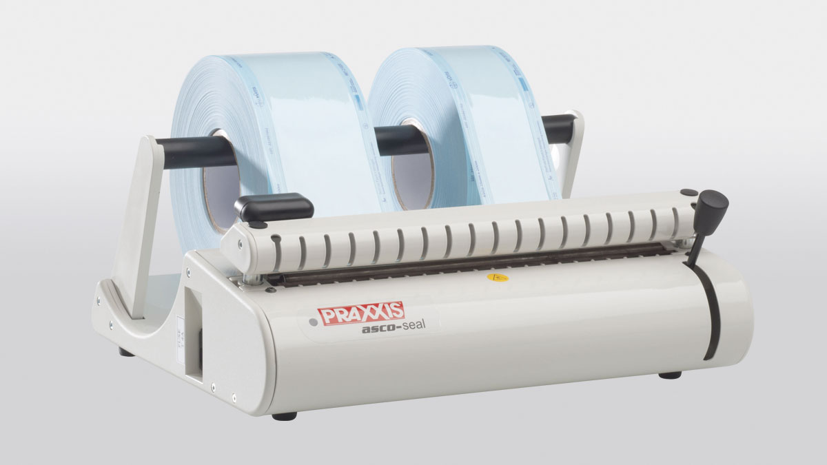 Folienschweißgerät asco-seal® Kompaktes, dauerbeheiztes Siegelgerät für die Herstellung professioneller und effizienter Sterilgutverpackung in Arztpraxen und OP-Zentren. asco-tainer Sterilisiercontainer bieten wegen der stabilen Konstruktion dem Sterilgut einen hervorragenden Schutz vor Beschädigung und sind bei der Lagerung stapelbar. Sterilisiervlies für Dampf-Sterilisation