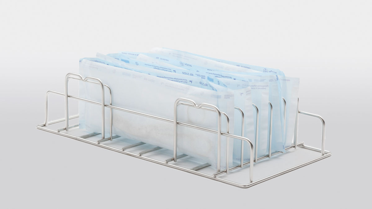 Der Folienständer 46 ermöglicht das senkrechte Sterilisieren der Instrumente und bewirkt ein besseres Trocknungsergebnis in einem asco-clav® 46.